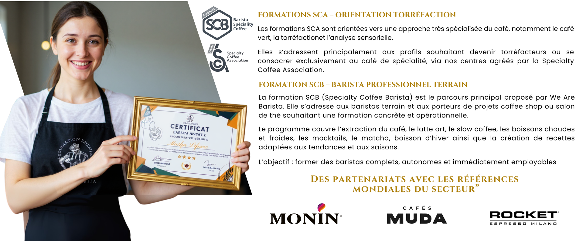 Oui. Nous vous accompagnons sur la technique barista mais aussi sur la création de carte, la gestion et la rentabilité, pour que votre projet soit solide dès le départ.